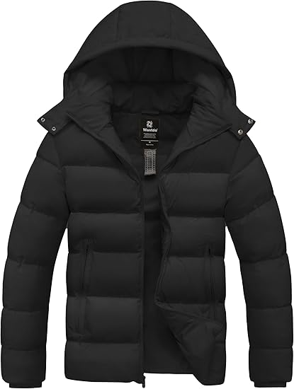 Men's Winter Puffer Jacket Hooded Puffy Fleece Warm Lightweight Coat Outerwear Cold Weather