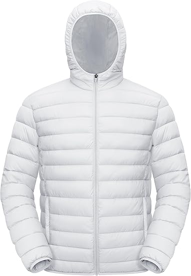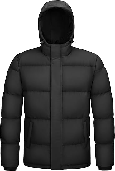 Men's Hooded Puffer Water-Repellent Down Alternative Jacket Insulated Lightweight Windbreaker Quilted Coat