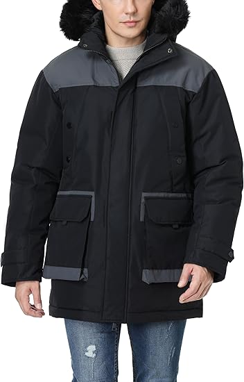 Men's Winter Parka Coat Heavyweight Long Down Jacket Warm Puffer Jacket with Detachable Hood