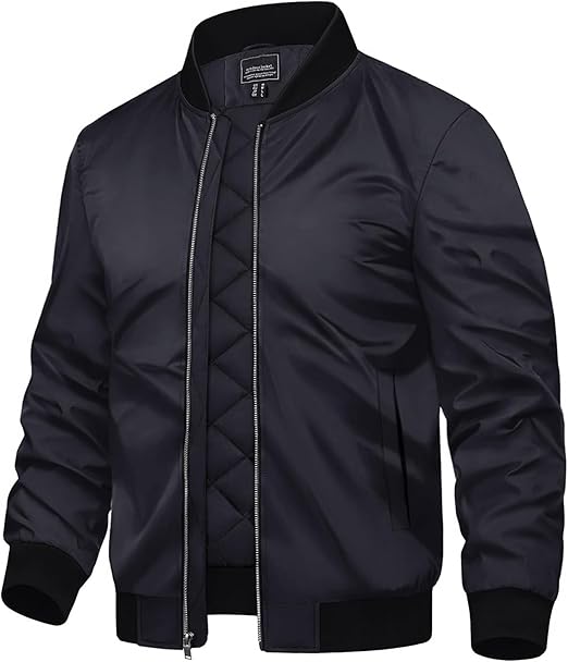 Mens Bomber Jackets Casual Fall Winter Warm Windbreaker Full Zip Windproof Outwear Padded Lined Coats