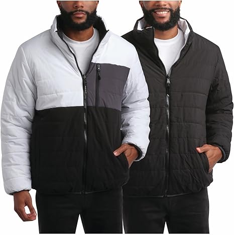 Men's Puffer Jacket - Full Zip Up Reversible Color Block Hoodless Puffer Jacket for Men (S-XXL)